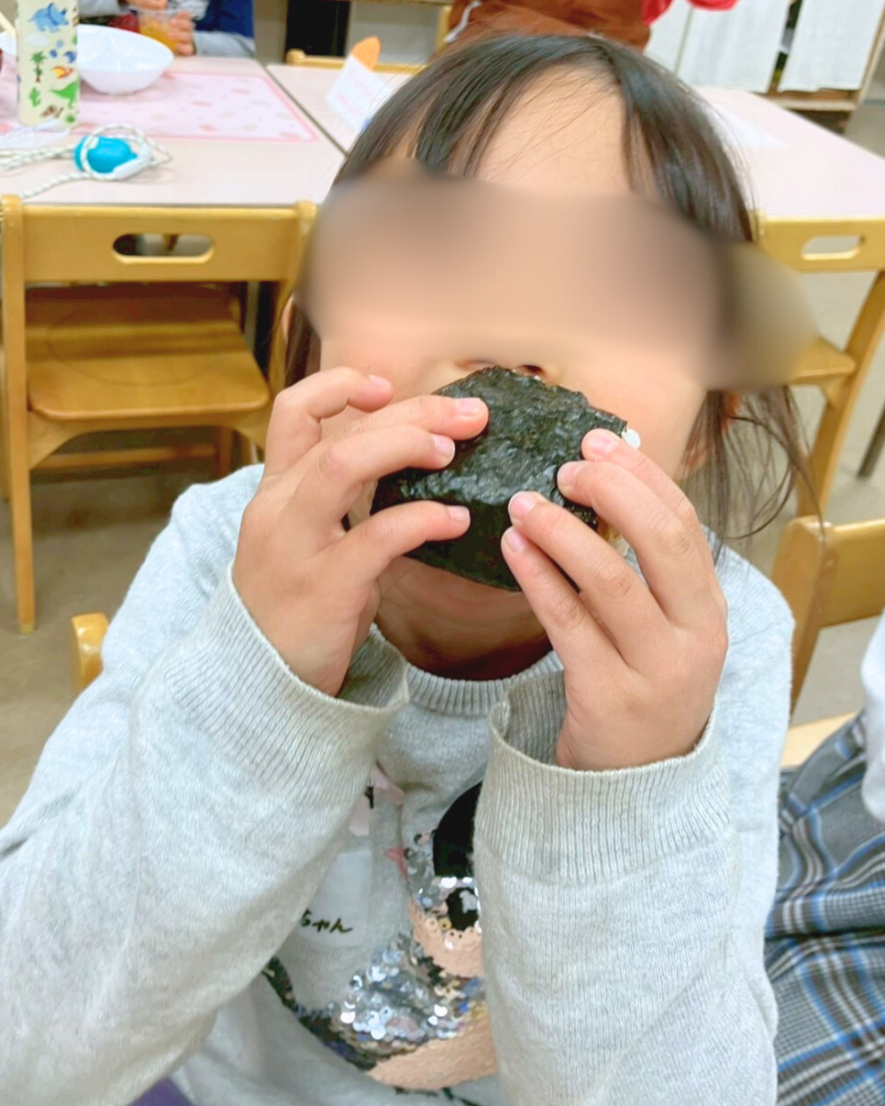 おにぎりを口いっぱいに頬張る姿がたくさん見られました😊